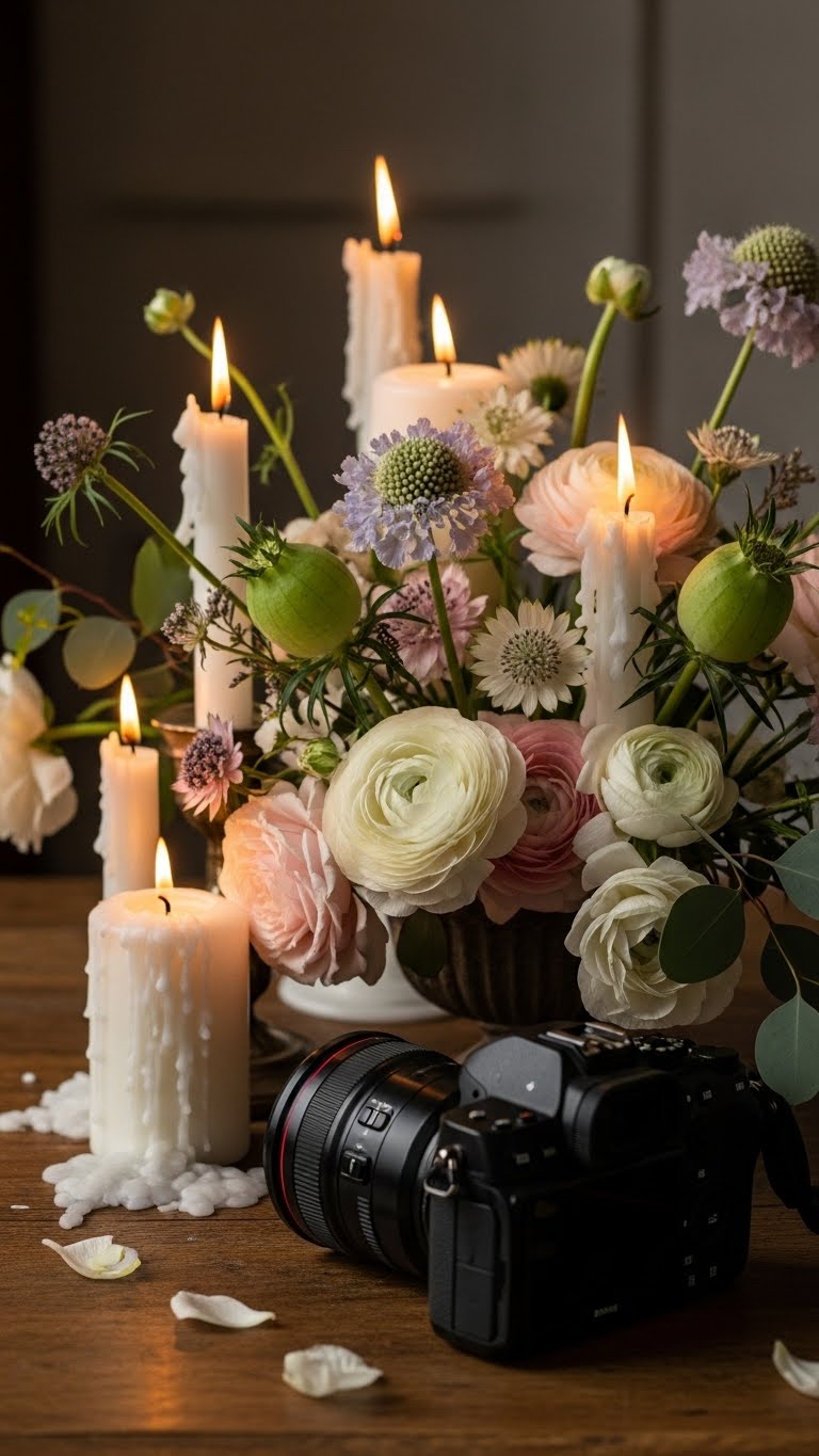Combine candles with flowers for texture. Pick blooms from your garden and place near candles. This adds depth. For DIY, arrange fresh picks. Set on surfaces: Blend carefully. Great for decor, it pops. Use local finds. See the beauty.