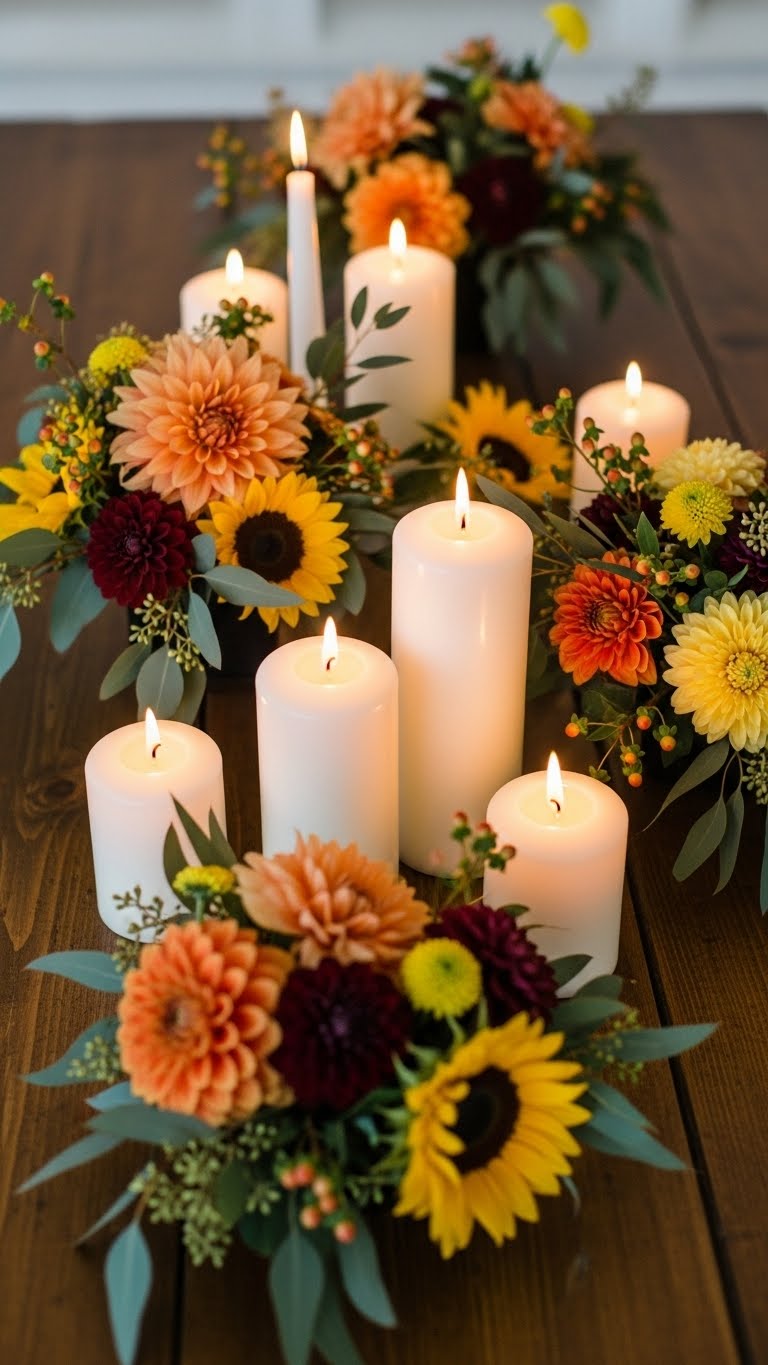 Match candles with seasonal flowers for runners. Pick current blooms and add candles. This seasons decor. For DIY, gather outside. Line tables: Integrate. Ideal for changes, it refreshes. Use fresh picks. Enjoy the cycle.