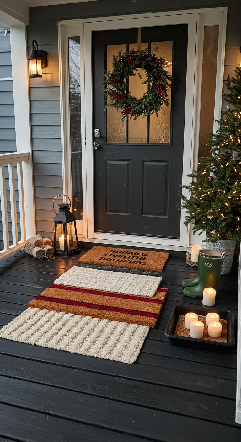 Layered doormats add instant depth and seasonality to your porch, letting you mix textures like coir, jute, and knitted wool for a look that feels both cozy and curated.