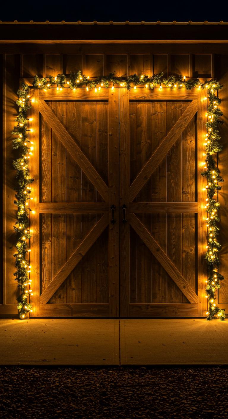When you drape string lights over a rustic barn door, they soften the wood’s rugged grain and lend a magical, twinkling welcome to your porch.