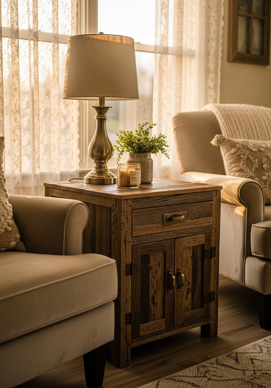 Opting for side tables made from reclaimed wood adds history and sustainability to your decor. I found one at an antique shop, and it fits perfectly next to my reading chair. You can style it with a lamp and a stack of books for that ultimate cozy corner. It’s those imperfect edges that make it feel so authentic.