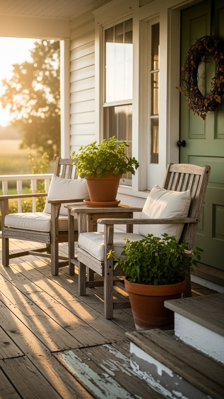Paint your porch in soft creams and greens. Get paint for $15 a can. Apply to railings and doors. Add cushions in neutral fabrics. Break it into parts: Clean the area first. Brush on the paint evenly. Hang a DIY wreath from branches. This creates outdoor flow. For a budget tip, use old pillows with new covers. Your porch feels connected to inside. Start with one element and expand.