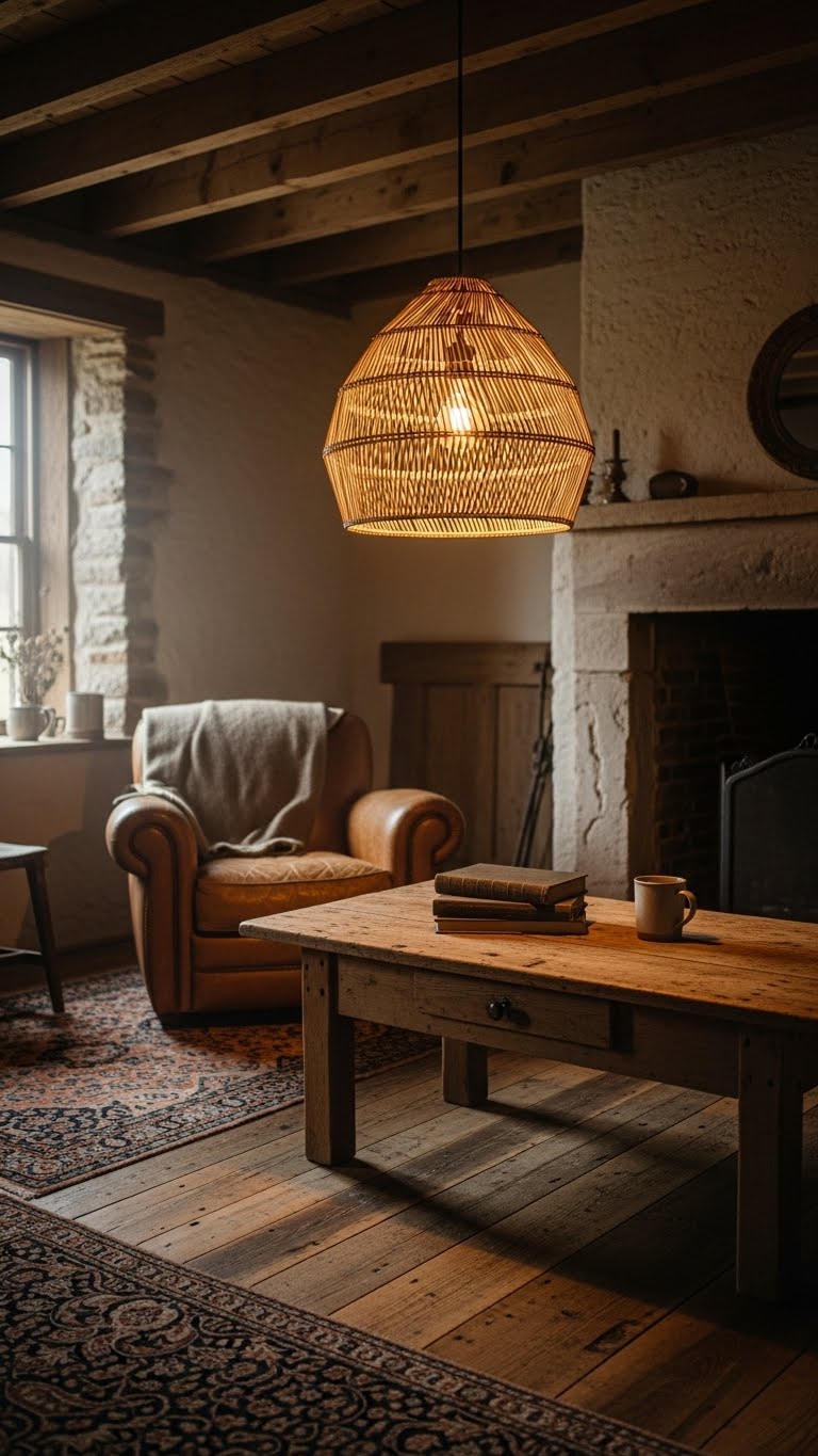 Hang a rattan light. Find one affordable online. Wire it up simply. This brightens corners. For DIY, add shades to bulbs.