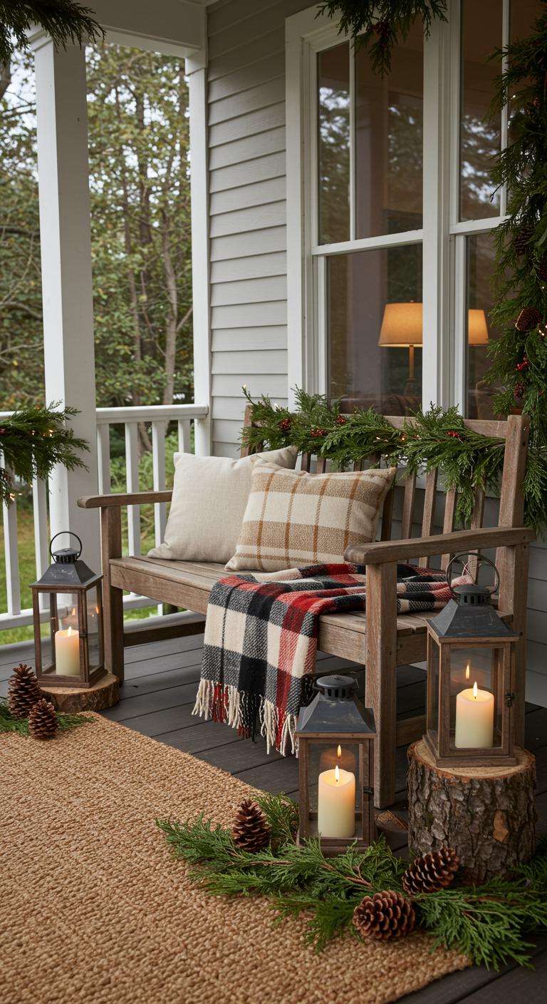 You’ll love how a few natural pieces and well-chosen textiles can turn your porch into a cozy, rustic holiday welcome. Think plaid throws, weathered wood, glowing lanterns, and evergreen sprigs arranged in buckets or milk cans—simple layers that feel lived-in and warm. I’ll walk you through 15 themed setups that fit different budgets and spaces, with easy swaps to suit your style, so you can pick one that feels just right and get started.