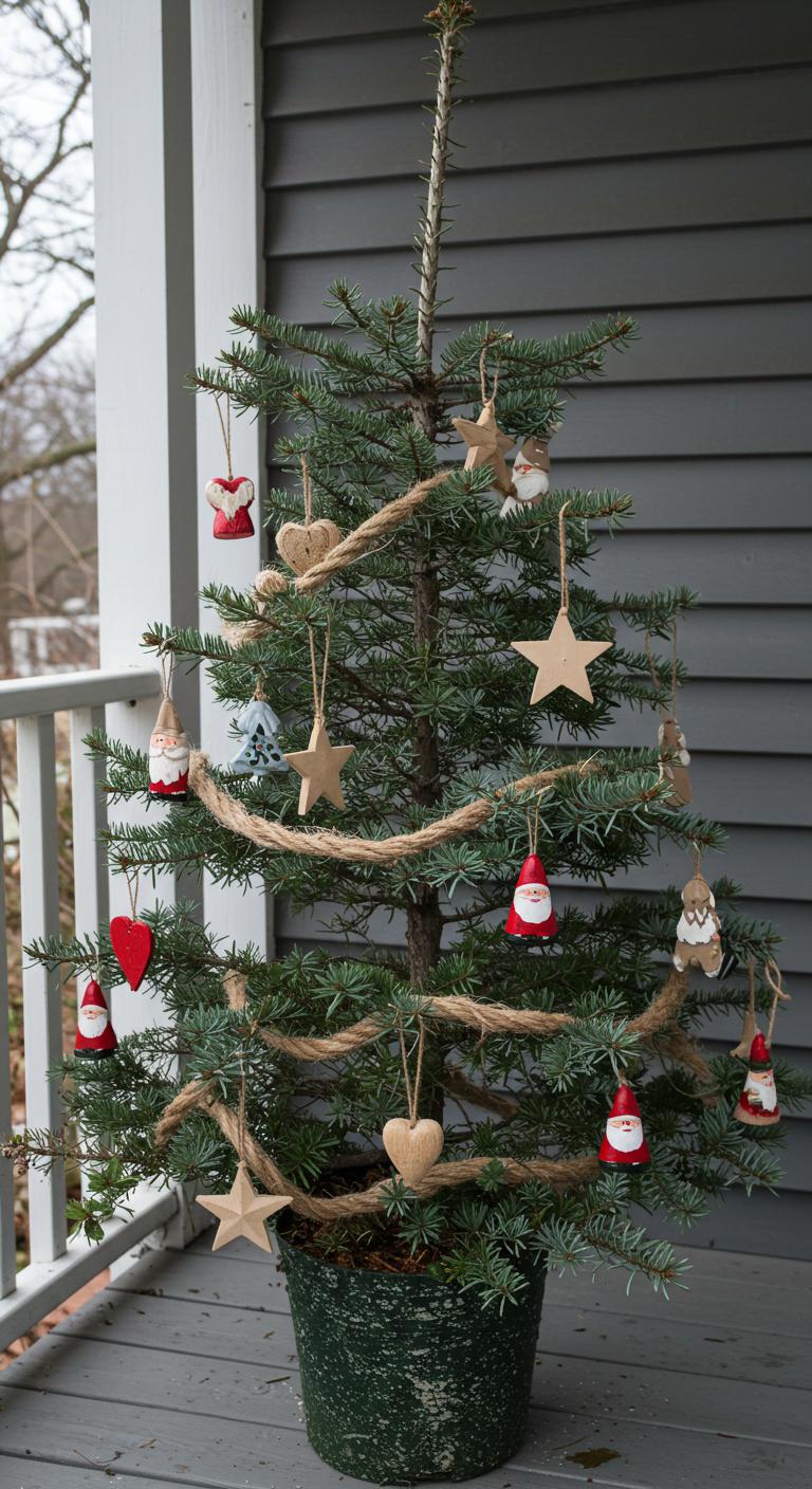 Picture a small, weathered tree on your porch, its limbs strung with hand-painted wooden ornaments that bring charm without fuss; you’ll find each piece adds personality, from simple stars and hearts to tiny painted Santas, and they hold up well in chilly, sheltered outdoor spaces.