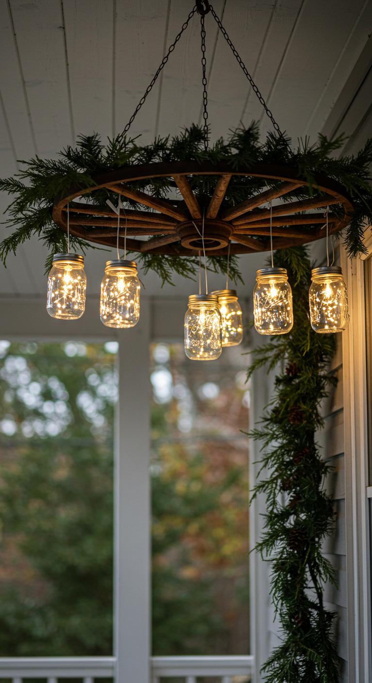 Nothing beats the warm glow of mason jar lights strung around an old wagon wheel hung on your porch—it’s both charming and surprisingly simple to pull off.