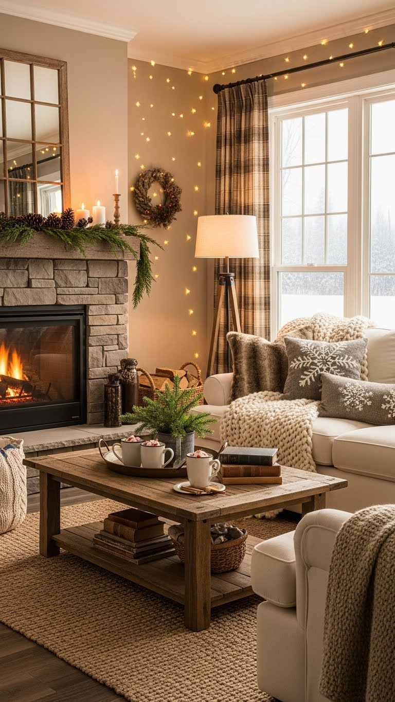 In wrapping up, these simple tweaks turn your living room into a rustic winter gem. Grab a few items and start today—your cozy space awaits.