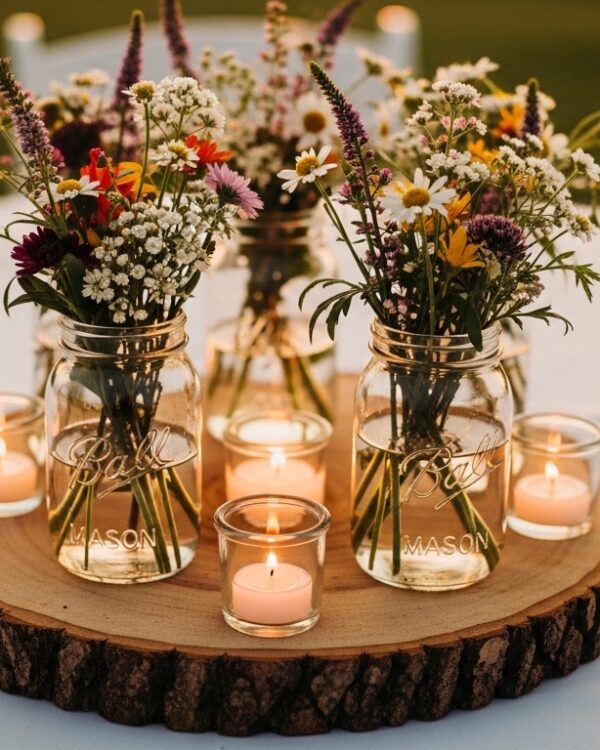 Forage greenery, buy market flowers in bulk, and use mason jars or tea lights you already own – aim for seasonal picks to slash costs. I once spent $10 per table at a roadside stand. It beats florists every time.