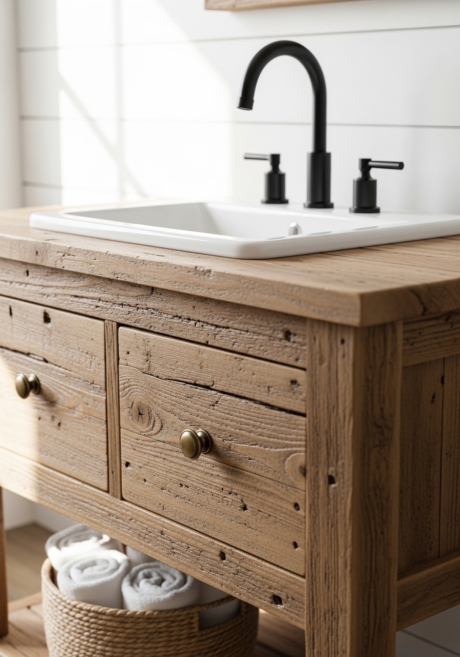 I found this old dresser at a garage sale for like twenty bucks and turned it into the perfect farmhouse vanity – just sanded it down, added a vessel sink, and boom, instant charm. You could do the same; it’s such an easy way to add that rustic touch without splurging on new cabinets. Last weekend, I helped my sister do hers, and she couldn’t stop raving about how it made her tiny bath feel so much bigger.