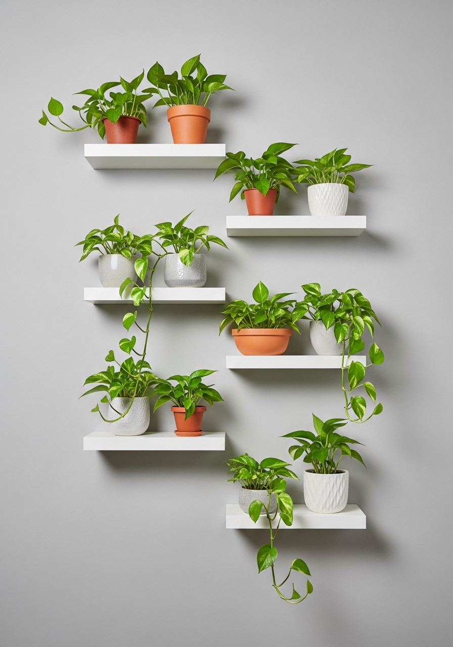 Floating Shelves With Curated Greenery (Boho, Living Room)