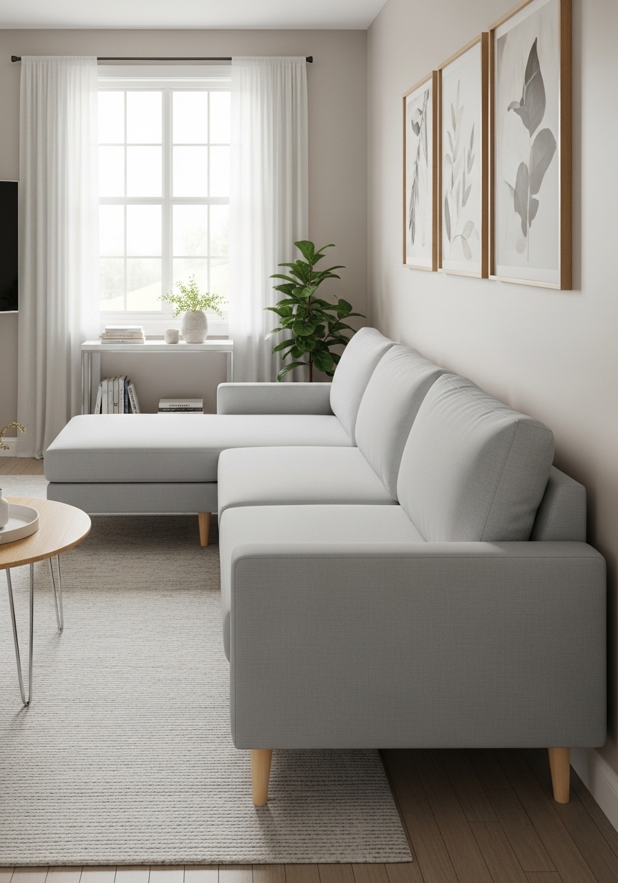 Slim-Profile Sectional for Efficient Seating (Modern, Small Living Room)