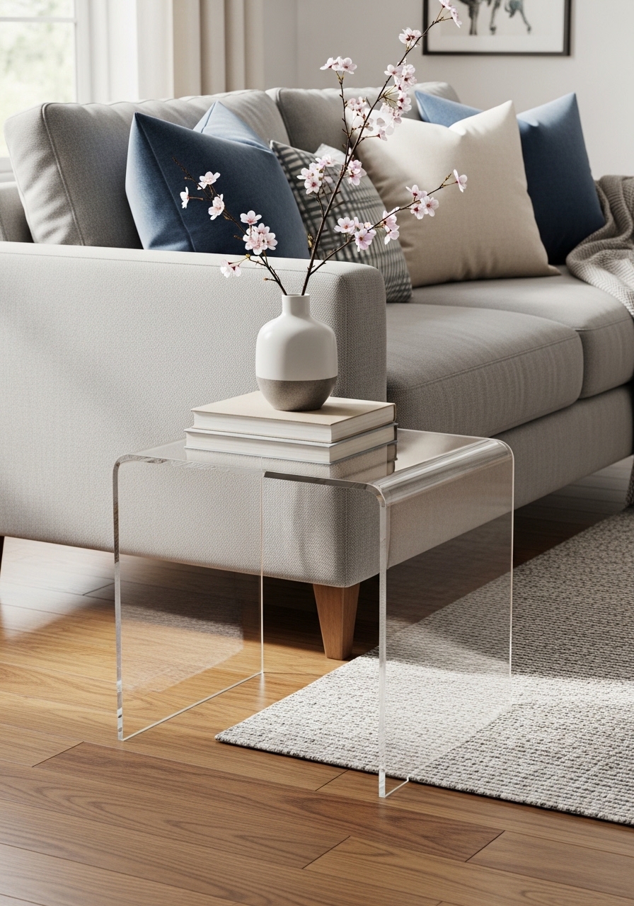 I swapped a wood side table for acrylic. It disappears visually. I linked acrylic side table and glass nesting table set. Tip: use a warm rug to avoid a cold feel. Mistake: mixing acrylic with too many metals; it feels disconnected.