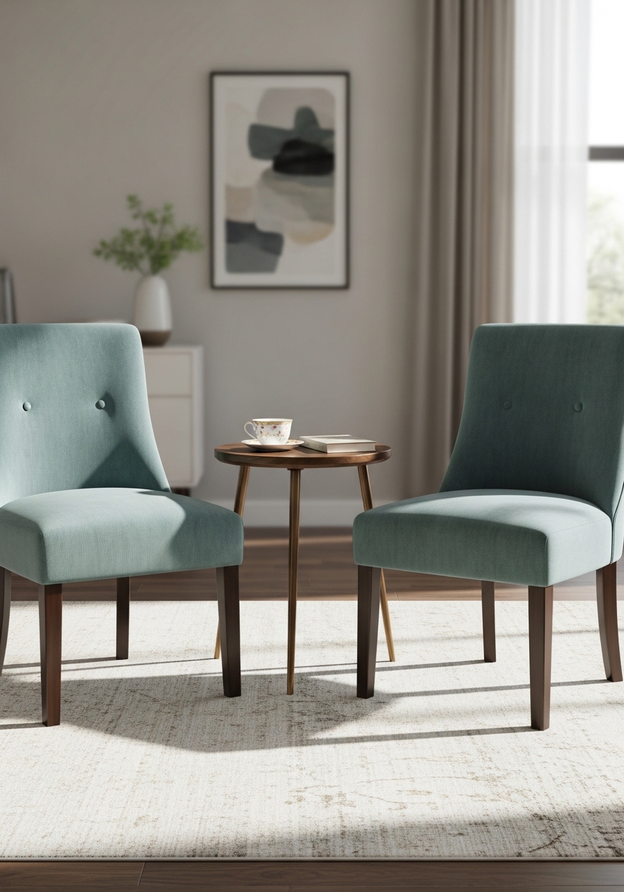 I chose two 26–28" wide accent chairs instead of a bulky loveseat. I linked narrow accent chair 26 inch and small side table 16 inch. Tip: mirror pairing with a rug anchor. Mistake: mismatched heights that look awkward.