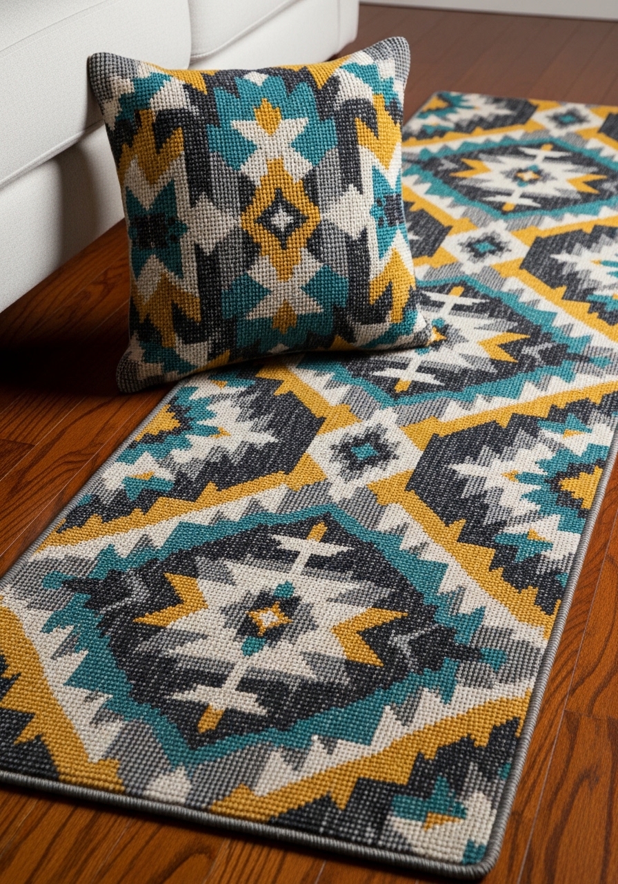 A: Yes—if you keep pattern scale varied and colors unified. Use one large pattern, one small, and a neutral texture. I combine a 20" geometric pillow and subtle striped rug like striped runner 2×6.
