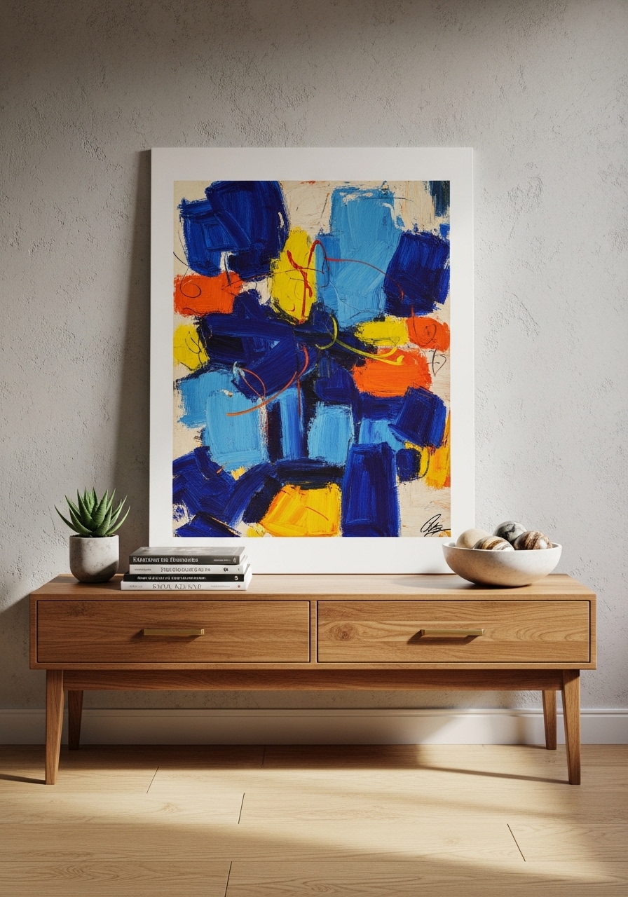I leaned a 30×40" print instead of hanging. It feels relaxed and scale-friendly. I used 30×40 art print and decor leaning frame. Tip: overlap with a smaller piece for interest. Mistake: leaning multiple same-size pieces—looks repetitive.