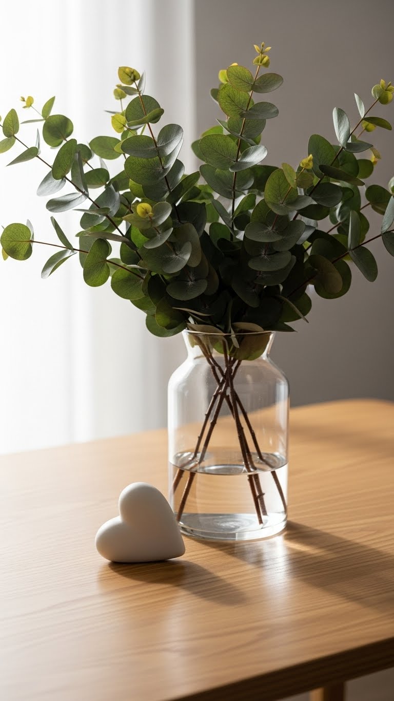 Go neutral with eucalyptus greenery. Clip branches and place in jars. Add small hearts for a hint of romance. This fits on counters or tables. Avoid bold colors for a calm feel. DIY: Forage eucalyptus from parks if possible. Cost? Free or under $1. Arrange with what you have. It adds texture without fuss. Your space stays elegant. Refresh as needed.