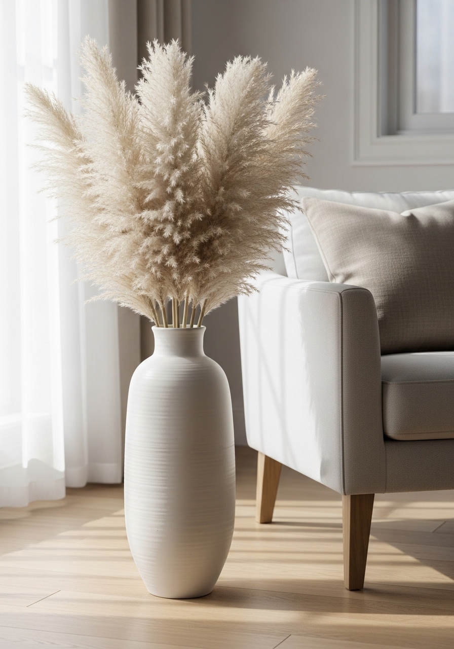 Pampas Grass and Ceramic Vases for Quiet Corners — Soft Accent