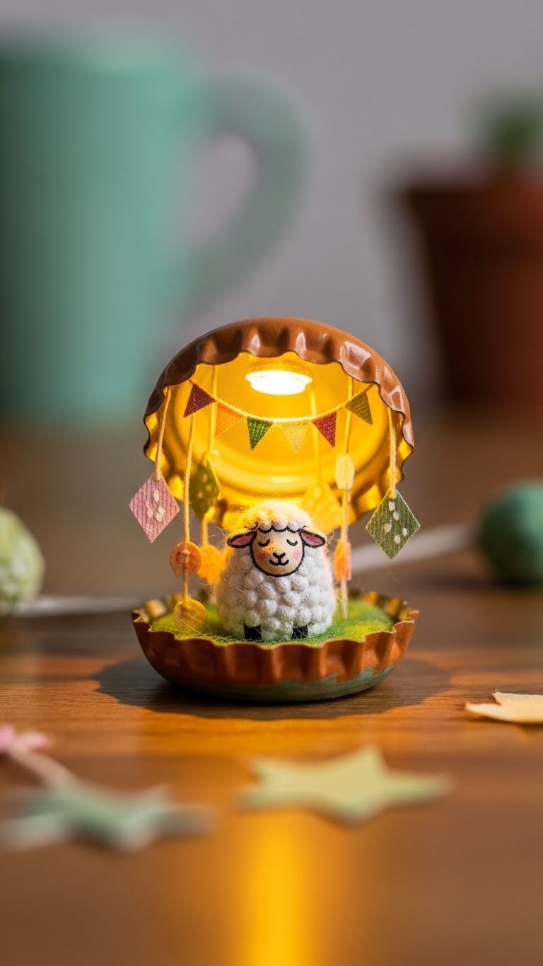 After a soft-lit canopy, try a tiny tabletop lamp that brings the same cozy vibe at a fraction of the scale: a bottle-cap fairy lamp with a cute sheep detail. You’ll craft a cap cozy housing a warm LED, tuck a painted mini sheep inside, and hang micro garlands. It’s portable, playful, and perfect for nimble, free-spirited corners.