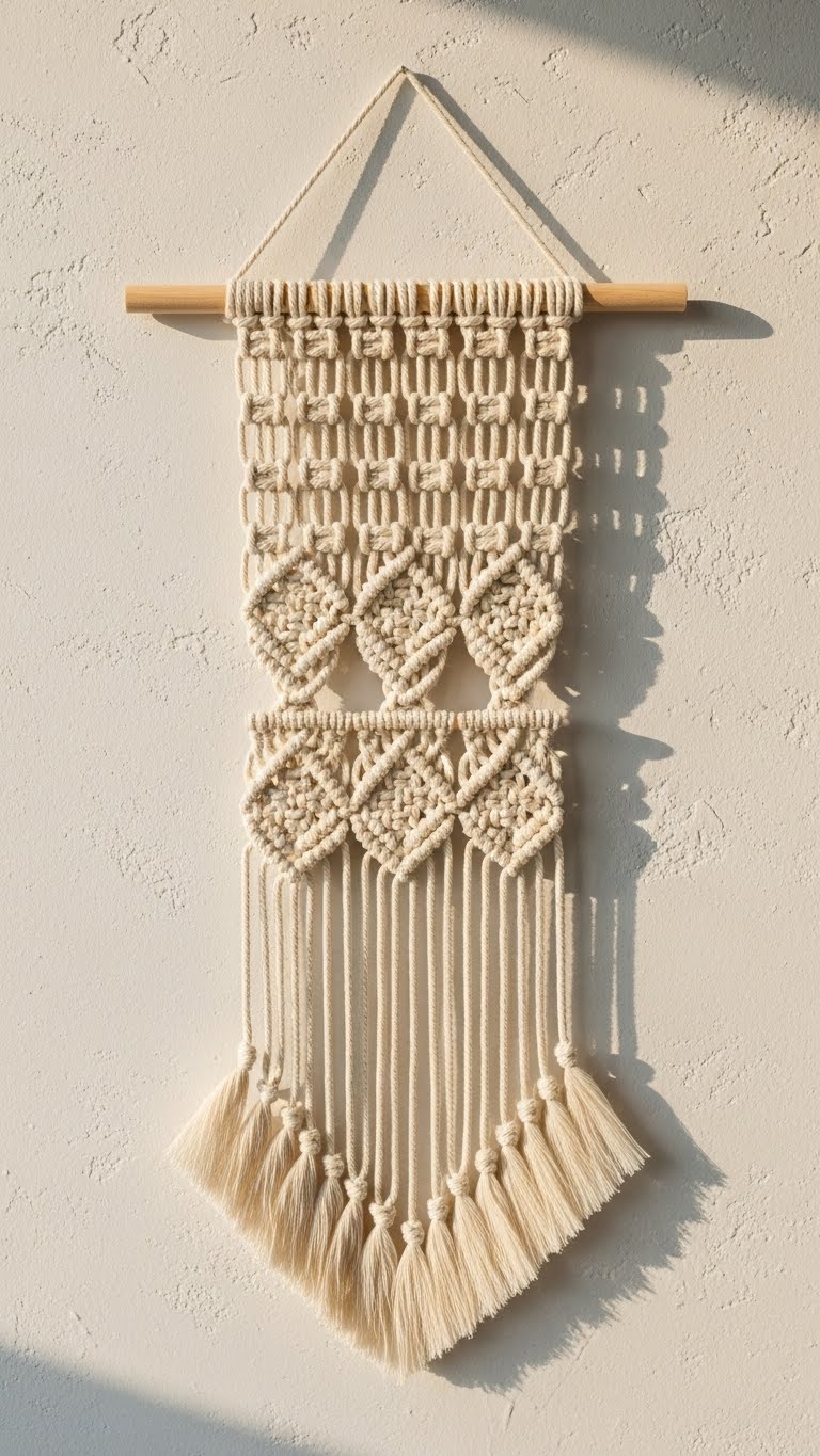 If you want an easy, on-trend accent that reads soft and modern, a simple macramé wall hanging delivers with just a few knots and natural cotton rope.