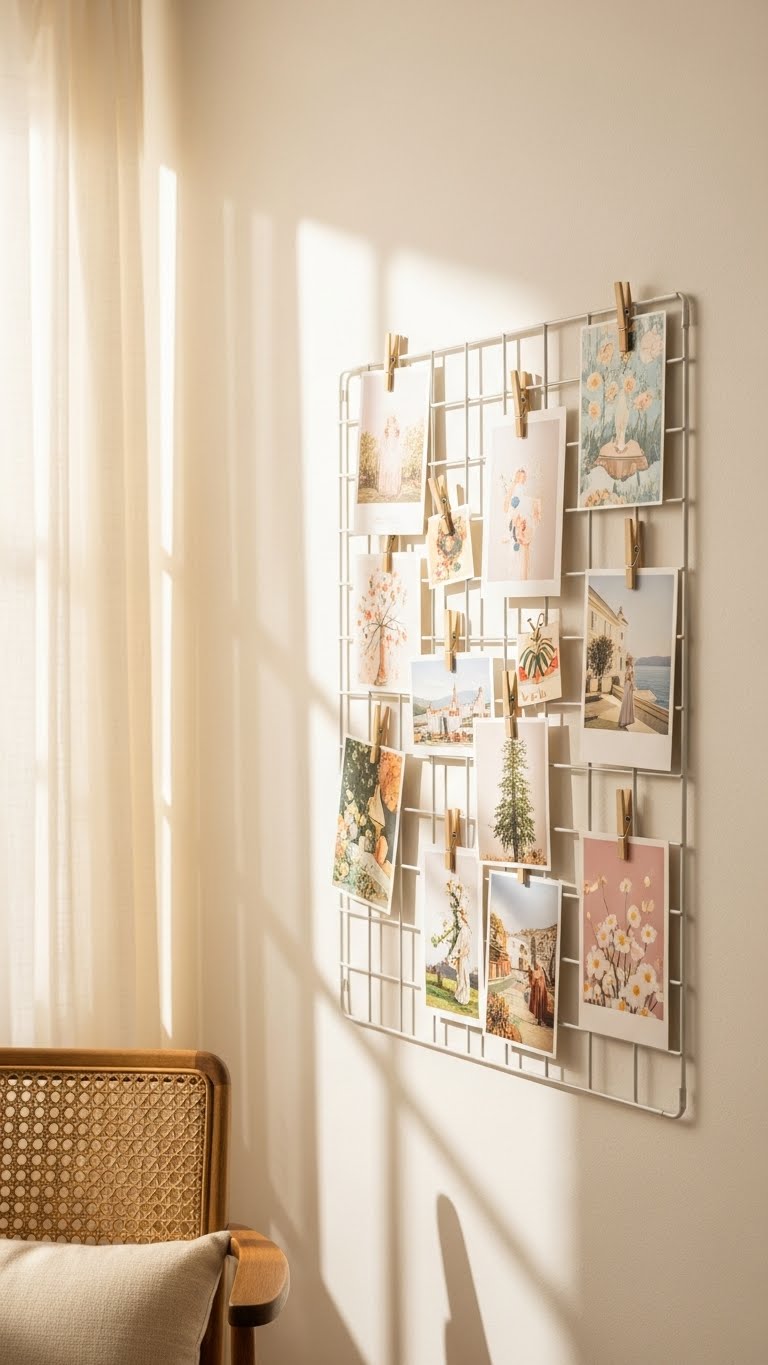 Arrange loose rectangles, play with negative space, and swap pieces seasonally—freedom to curate, no commitment, instant soft-aesthetic impact.