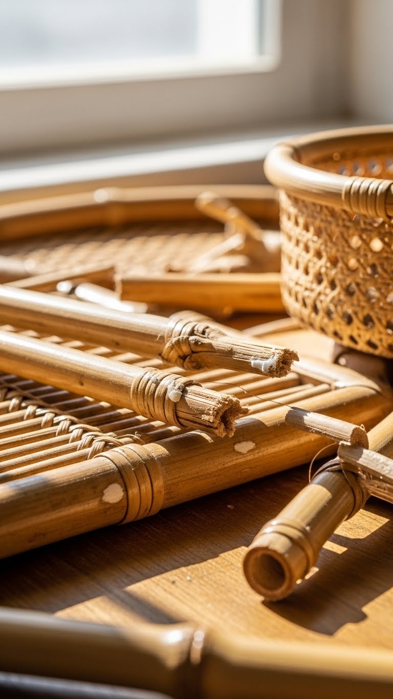 If you loved the airy look of hanging baskets, you’ll find the same gentle, sun-kissed vibe in thrifted rattan and bamboo pieces once you give them new life. You sand, clean, and apply a light patina technique to age or brighten tones.