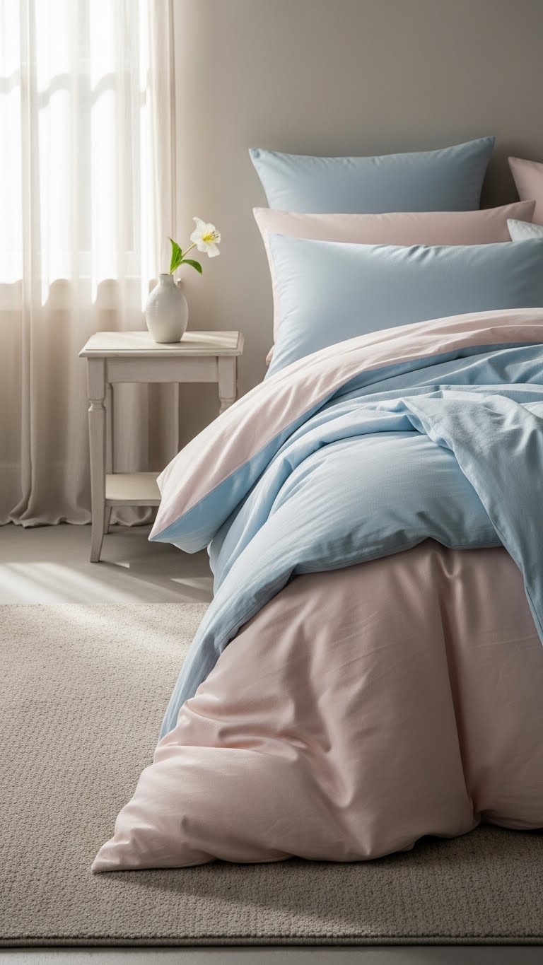 Soft pastels make bedrooms feel like a dream. Start with a base of pale lavender sheets. Add a throw in blush pink on top. Mix in mint green accents for balance. This creates depth without overwhelming the space.