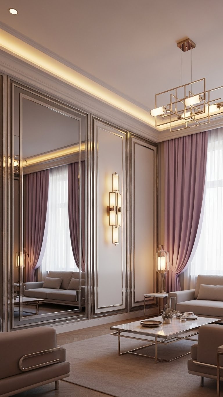 Neo Deco adds glamour to pastels. Use light metallics with lilac shades.