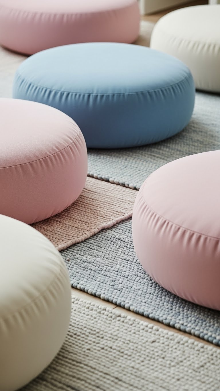 Gummy textures bring softness to pastels. Use plush pillows in pink.