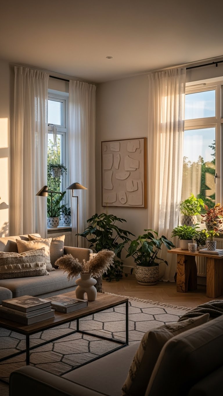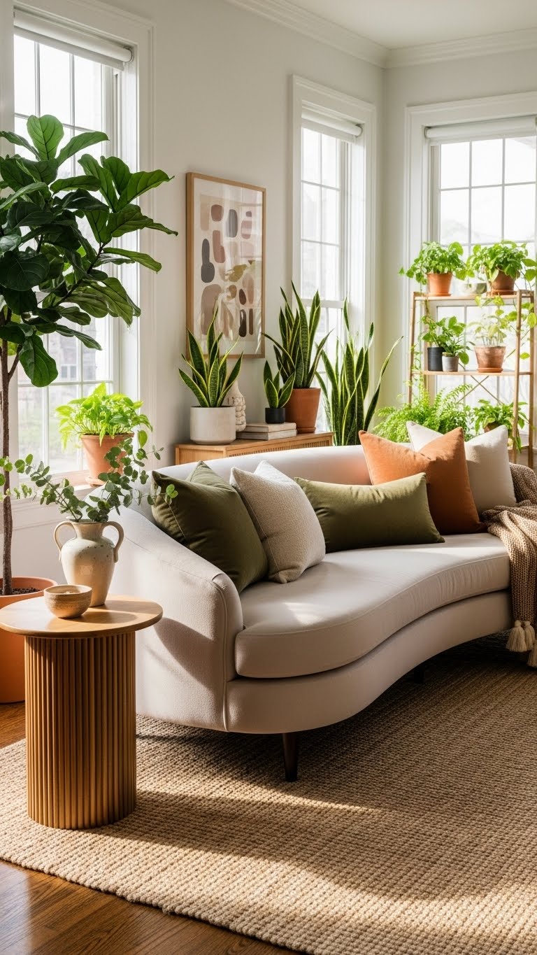 Plants bring a biophilic vibe that calms any living room. Head to a nursery for affordable options like pothos or succulents. They thrive indoors with little care. Set them on a simple shelf or table. Start small: buy three plants for under $15. Group them near a window for natural light. For a DIY hack, repot them in thrifted containers painted terracotta. This adds texture without extra cost. Layer with jute mats underfoot for that organic feel. Watch how it softens the space. Change plant spots weekly to keep things dynamic. These additions make your room feel connected to the outside. Try it and see the difference in your daily routine. Simple steps like this refresh the whole area.