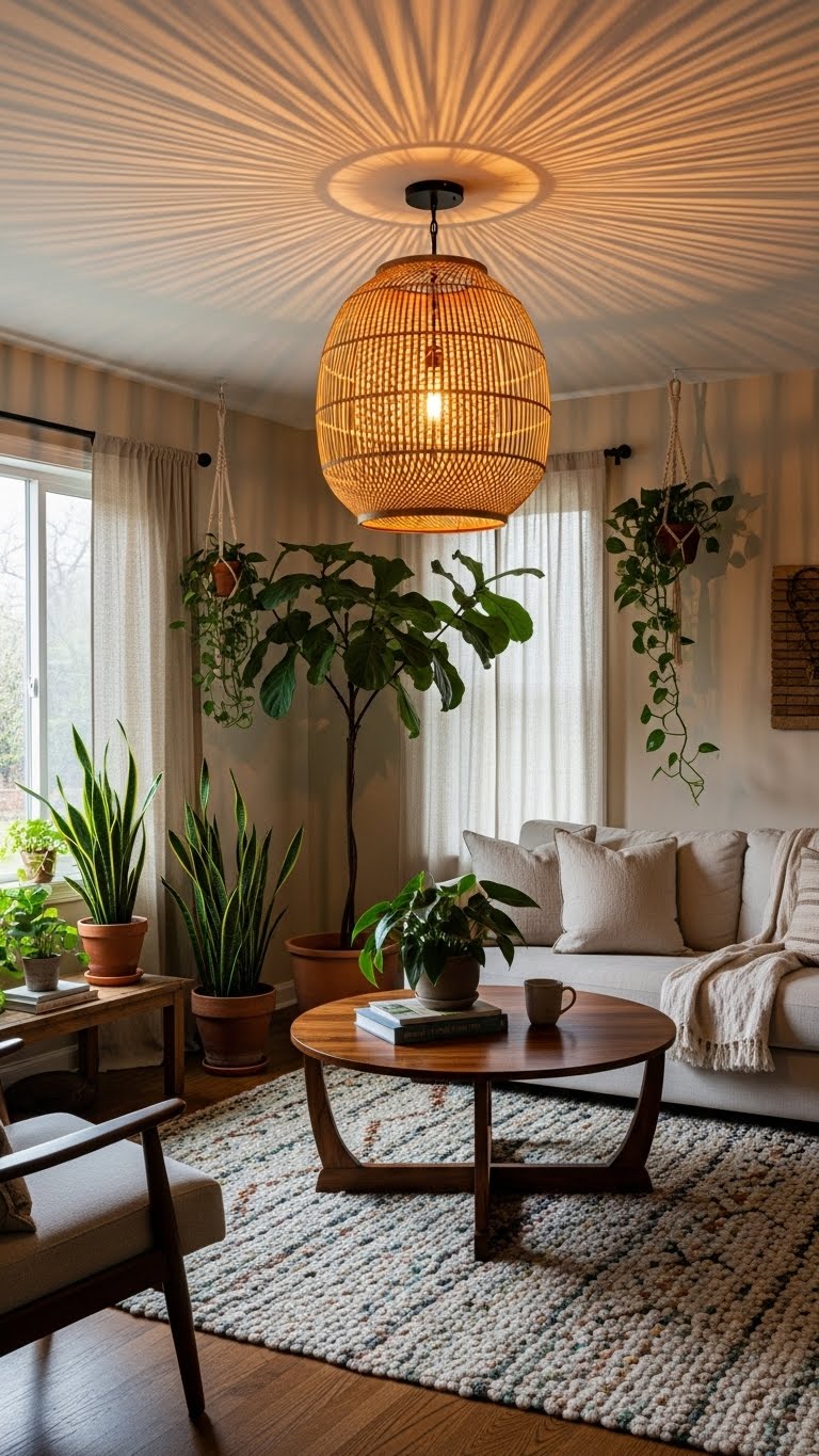 Bamboo lights bring drama with a natural twist. Pick a simple fixture online for less than $25. Hang it above your seating area. Start by replacing an old lamp. For DIY, wrap a basic shade with bamboo sticks from a craft kit. This mimics sunlight and adds texture. Angle it to highlight key spots. Keep wiring simple and safe. These lights make evenings feel special. Change bulbs for different moods.