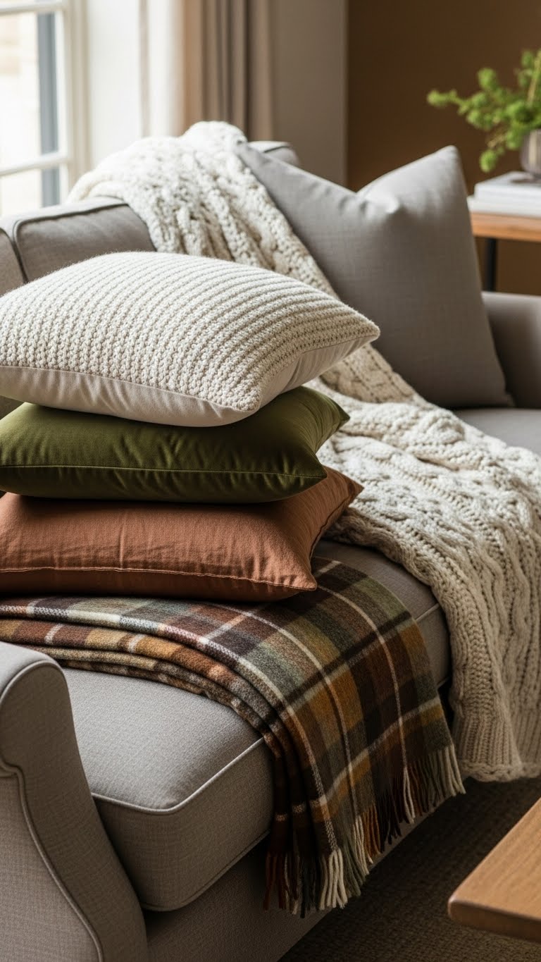 Textural stacking warms up spaces. Layer cushions and throws. Buy from sales. Start on sofas. For DIY, mix fabrics. This builds depth. Arrange neatly. These layers invite relaxation.