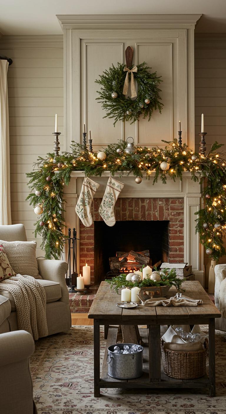 Embrace farmhouse charm with vintage ornaments, natural greenery, and handmade touches that celebrate simplicity.