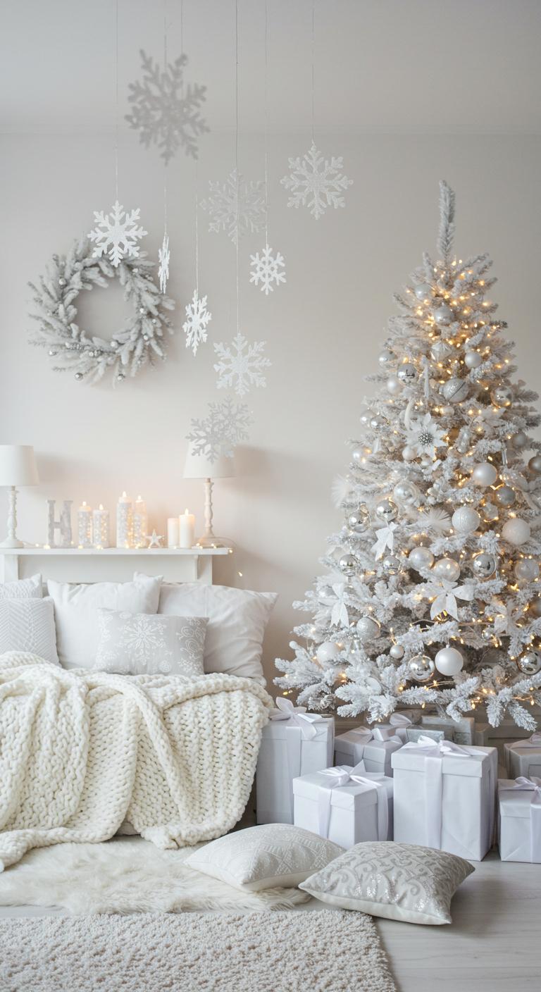 Embrace white decor accents like shimmering snowflakes and soft textures. Adorn your tree with elegant tree ornaments that reflect light beautifully.