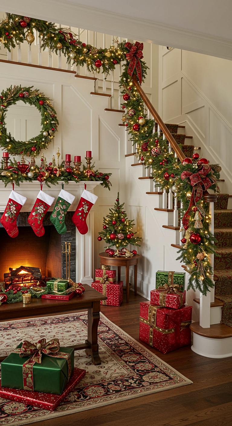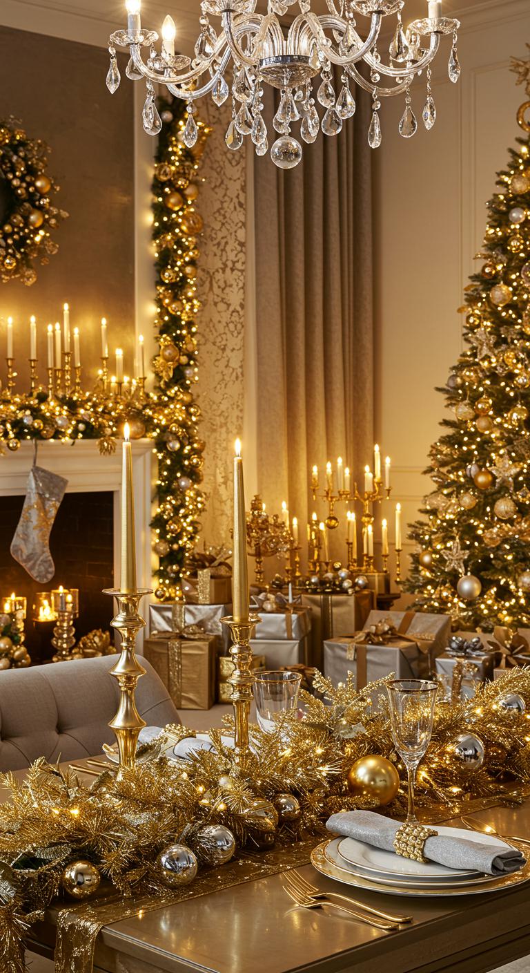 Elevate your holiday decor with the opulence of gold and silver accents, transforming your home into a winter wonderland of elegance.