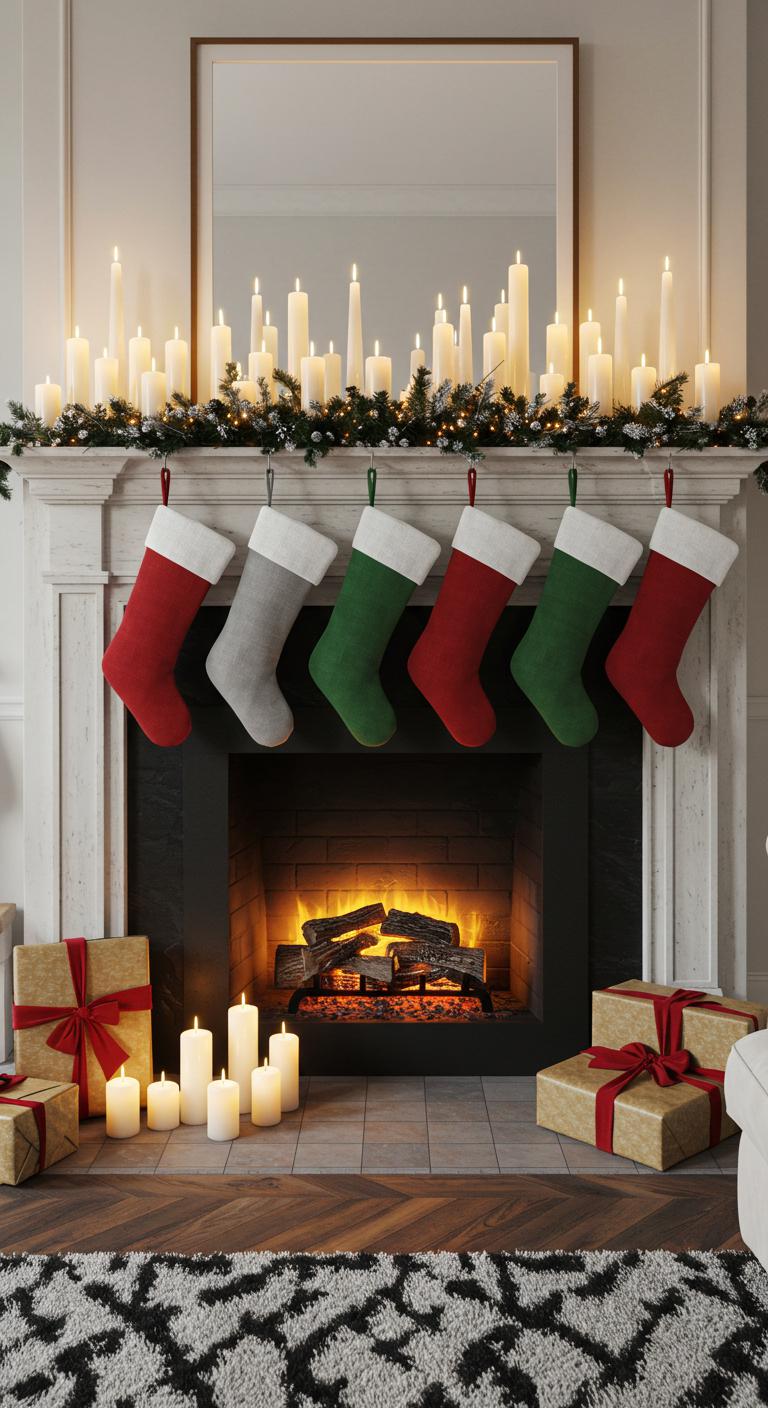 Create eye-catching mantel stocking arrangements that showcase your unique style, and pair them with seasonal candle displays to add a soft, inviting glow.