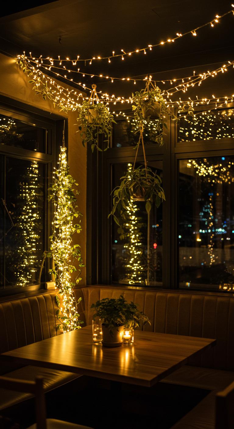 Hang lights above your dining area or weave them through indoor plants, crafting an inviting indoor fairyland.