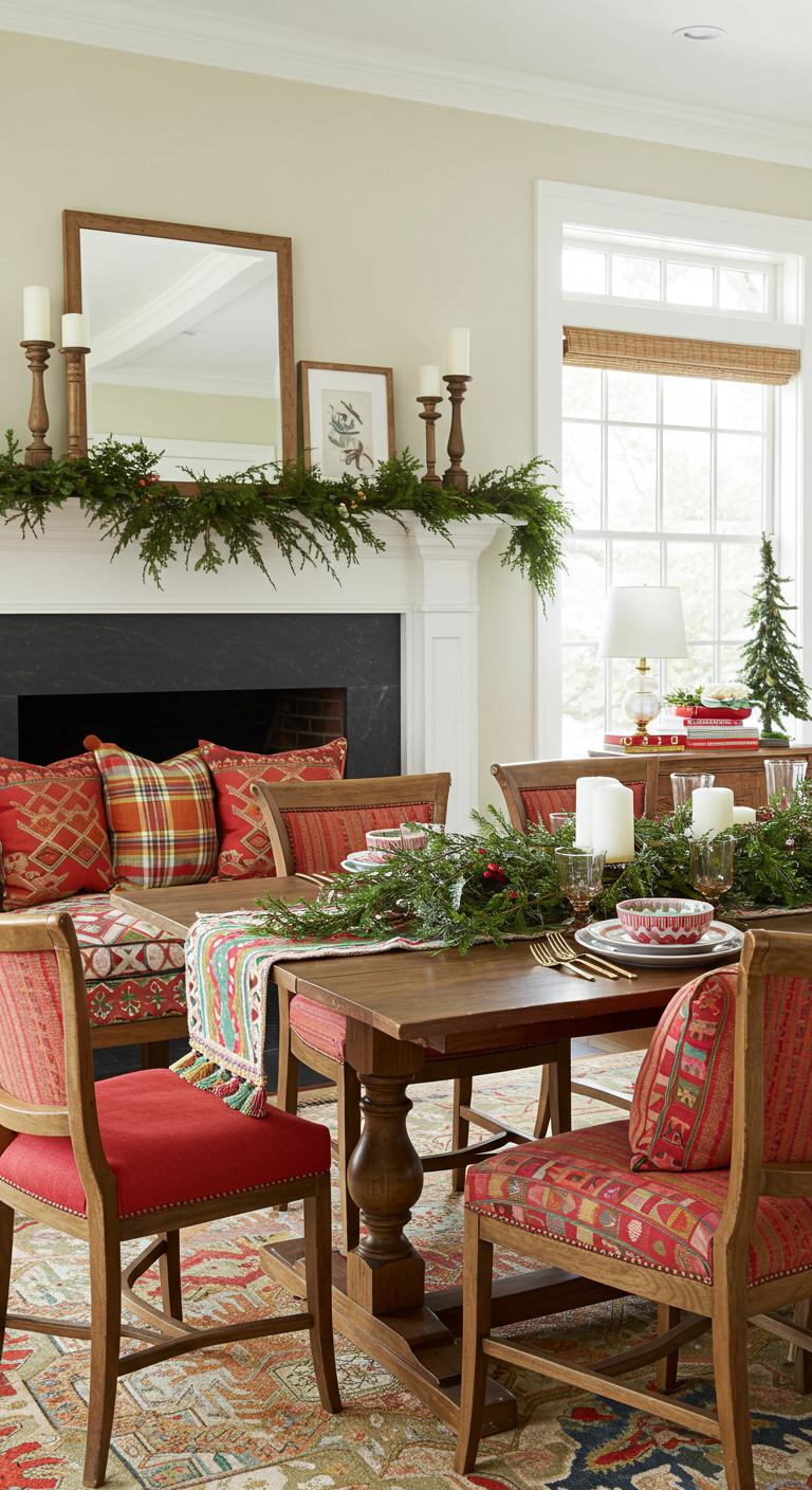 After layering your space with vibrant textiles, think about how Christmas garlands can elevate your holiday decor even further.