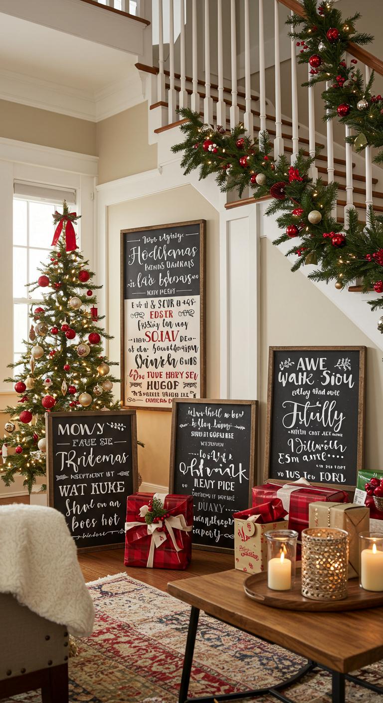 Think unique holiday signboards showcasing whimsical messages in playful, festive typography. Personalize them with family names or inspiring quotes, and place them throughout your home.