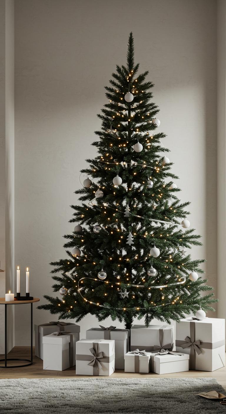 Opt for a sleek, minimalist tree adorned with subtle accents that reflect your style. Think monochromatic ornaments or natural elements, creating a calm atmosphere.