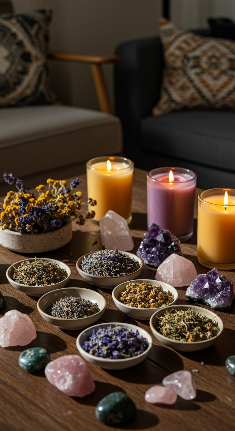 • Crystals in earthy tones, like amethyst or smoky quartz.