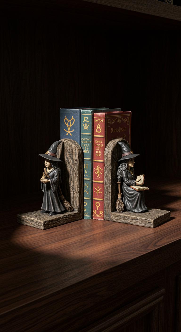 Bookends don’t just hold your favorite books—they can also be stylish decor. Opt for witch-themed designs like crescent moons, skulls, or crystals. Search online platforms or local shops for budget-friendly options. Conversely, you can get crafty! Decorate simple bookends with paint, stickers, or woodburning art. This is a simple way to personalize your reading collection while emphasizing your unique style.