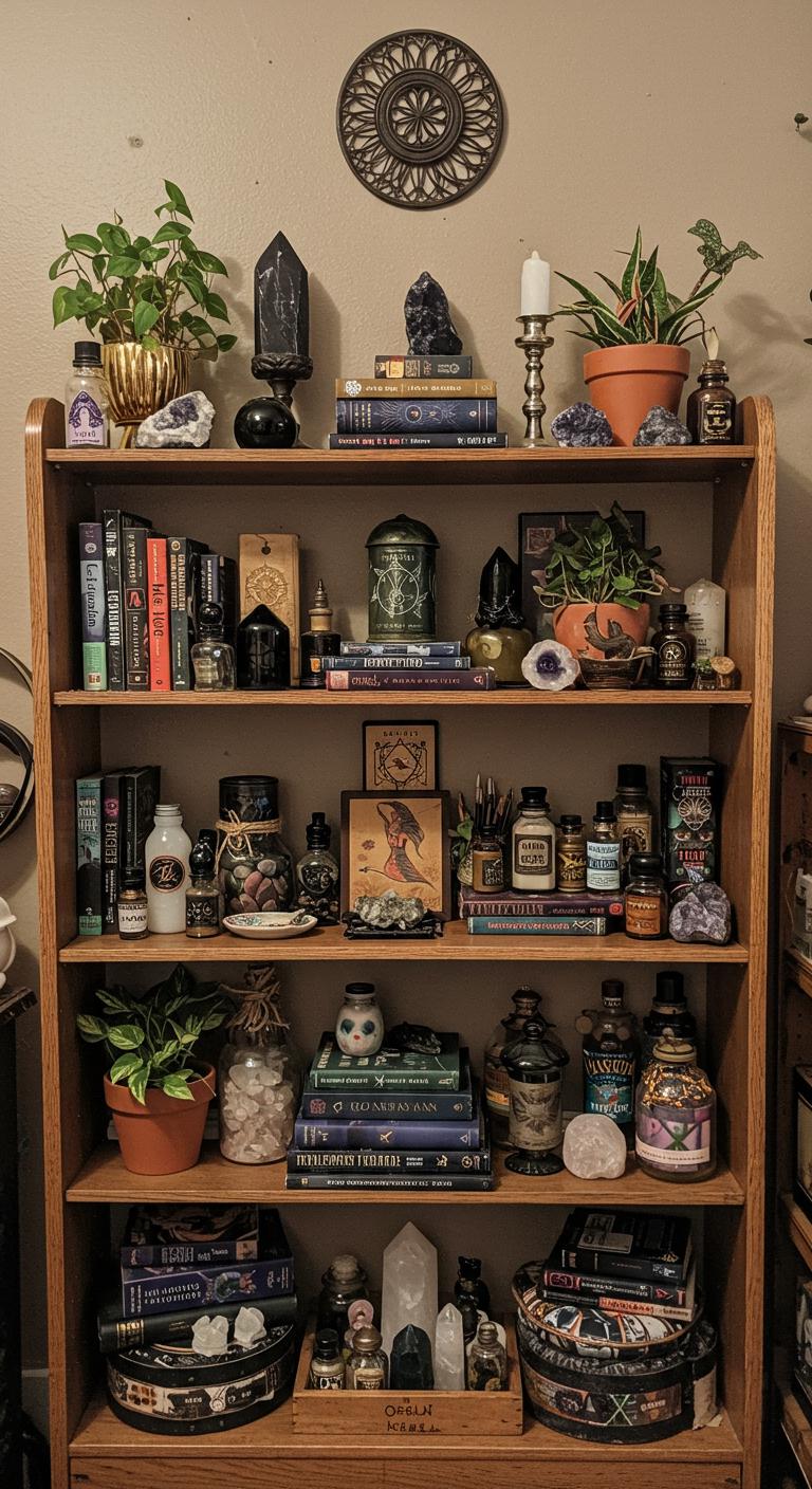 Open shelving offers a fantastic opportunity to display your witchy items. Use it to show off crystals, plants, or mystical artifacts. Arrange them by color or size for visual harmony. It’s a functional decor piece that helps keep your workspace organized. Artwork can go above, while books can help fill spaces. You can find affordable shelving at local stores. Personal touches will make your office shine with witchy spirit!
