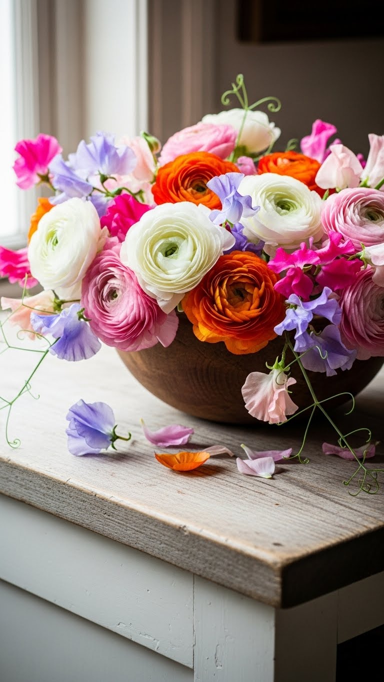 Choose February blooms like ranunculus. They fit the season well. Pick from locals. Arrange simply. This keeps it timely.