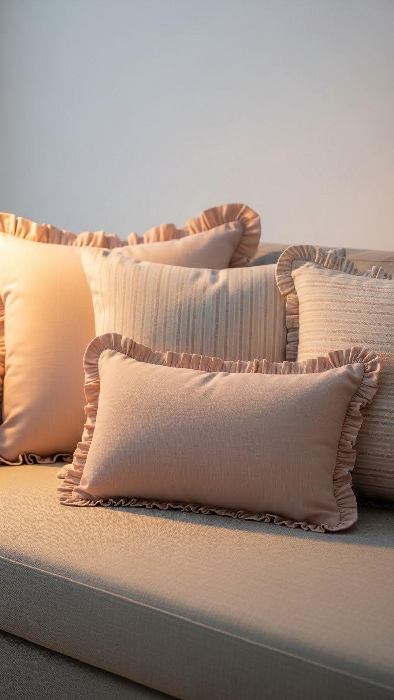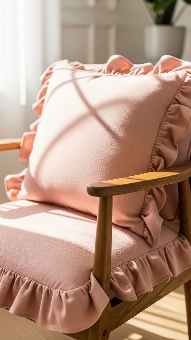 Ruffled cushions transform plain chairs quickly. Pick ones with blush pink fabric from affordable sites for under $15. Add them to your dining or reading chairs for comfort. This brings a soft, romantic feel for February. DIY option: Sew covers from old sheets with ruffle trim. It’s simple and costs nothing extra. Arrange for symmetry or mix it up. Your chairs will invite more lounging. Keep the rest neutral to highlight the accents. Use removable covers for easy washing. This change makes your space more inviting for guests.