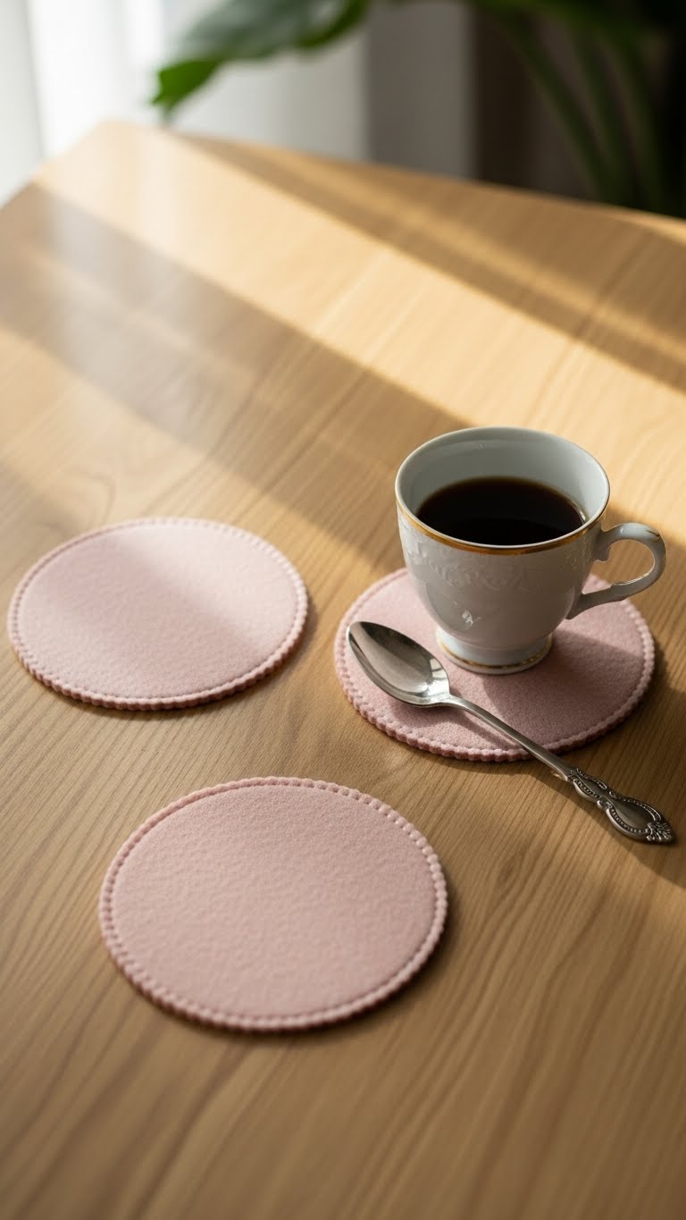 Coasters protect tables stylishly. Buy a set for $5. Use daily. Your table will stay neat.
