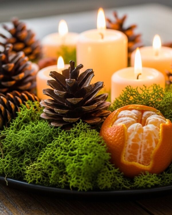 Grab a wooden tray, toss on candles and whatever greenery you have – like eucalyptus from the store. It takes five minutes and looks intentional. I’ve done this lazy version a ton; always gets compliments.