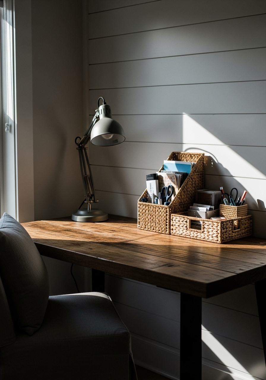 Setting up a small office with farmhouse elements like a wooden desk and natural textures keeps work feeling homey. I turned a spare closet into one, and it’s my productive hideaway now. You can add a pegboard for notes to keep it organized. It’s great for remote days without sacrificing style.