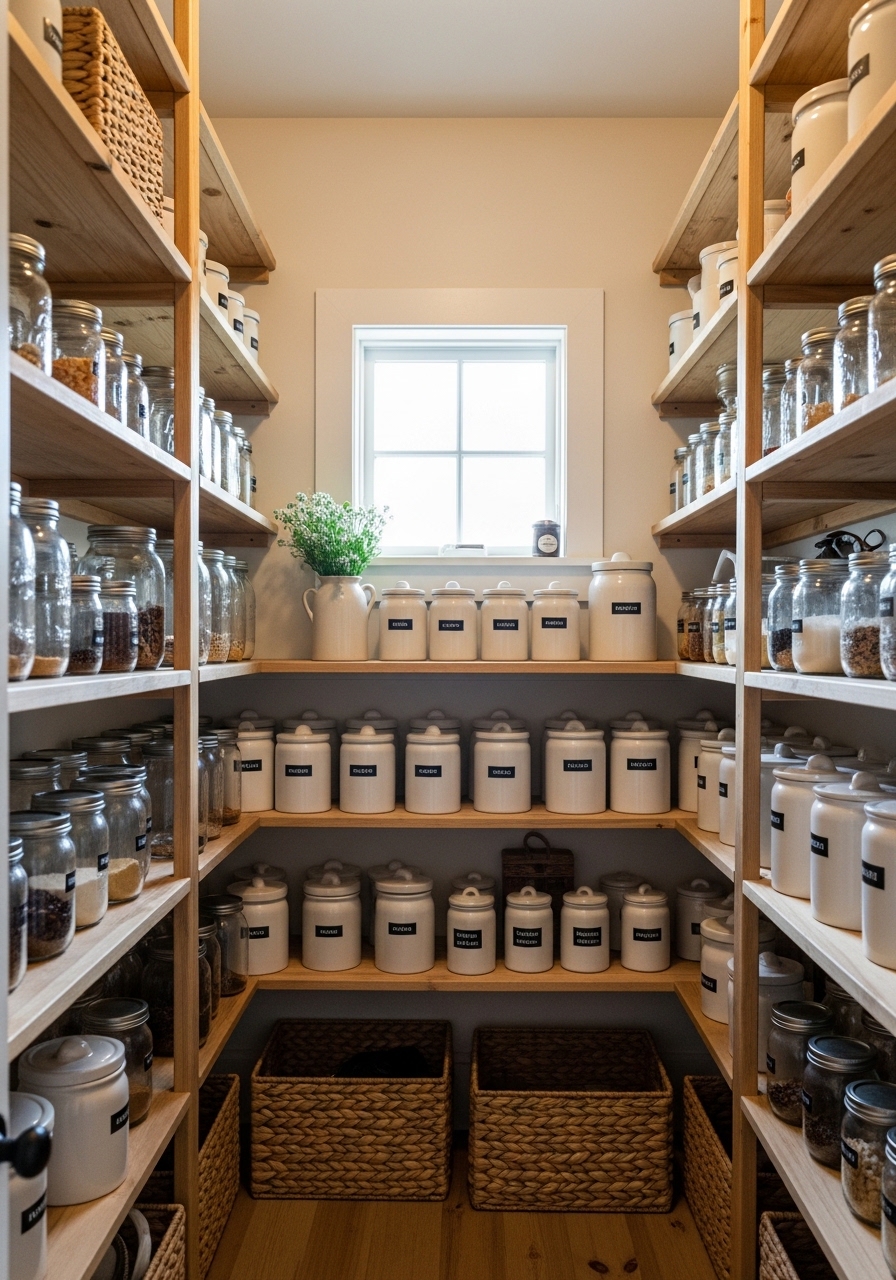 Organizing a pantry with exposed shelves and jars brings functionality with aesthetic appeal. I labeled mine with chalk tags, and it makes meal prep a breeze. Feels like a country store in your own home.