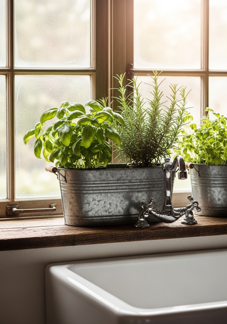 Forget fancy planters; a windowsill herb garden like this brings the outdoors in affordably. I started mine with seeds from the dollar store and old tins – now I snip fresh herbs for cooking daily. It’s a small change that makes your kitchen smell amazing and adds that farm-fresh feel.
