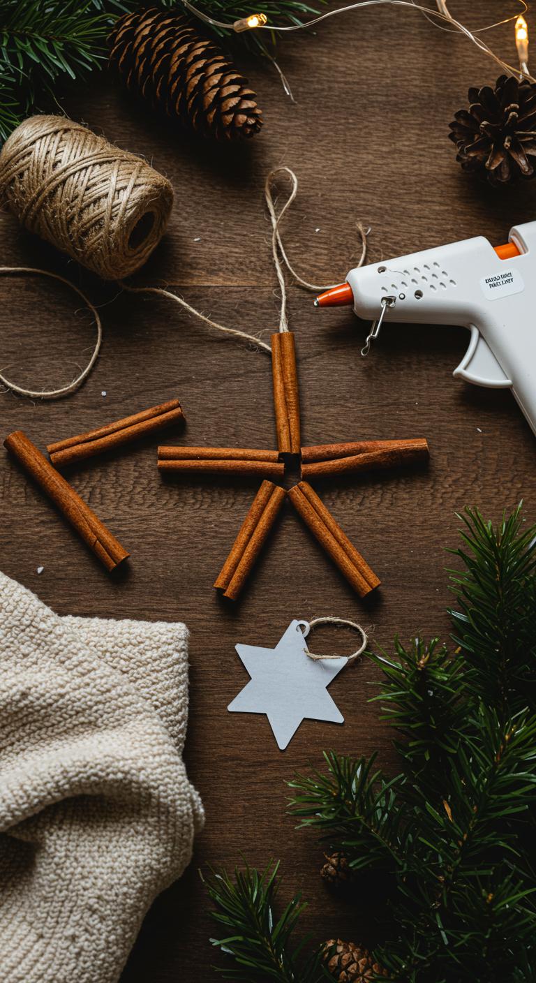 Start by gathering five to six cinnamon sticks, a hot glue gun, twine, and a small star-shaped form or template; you’ll see how quickly they come together. You’ll align sticks over the template, trim ends, glue intersections, and wrap twine for a hanger. This cinnamon stick crafts project gives you straightforward steps and a free-spirited vibe, perfect rustic holiday decor for a liberated home.